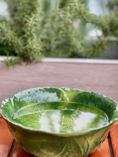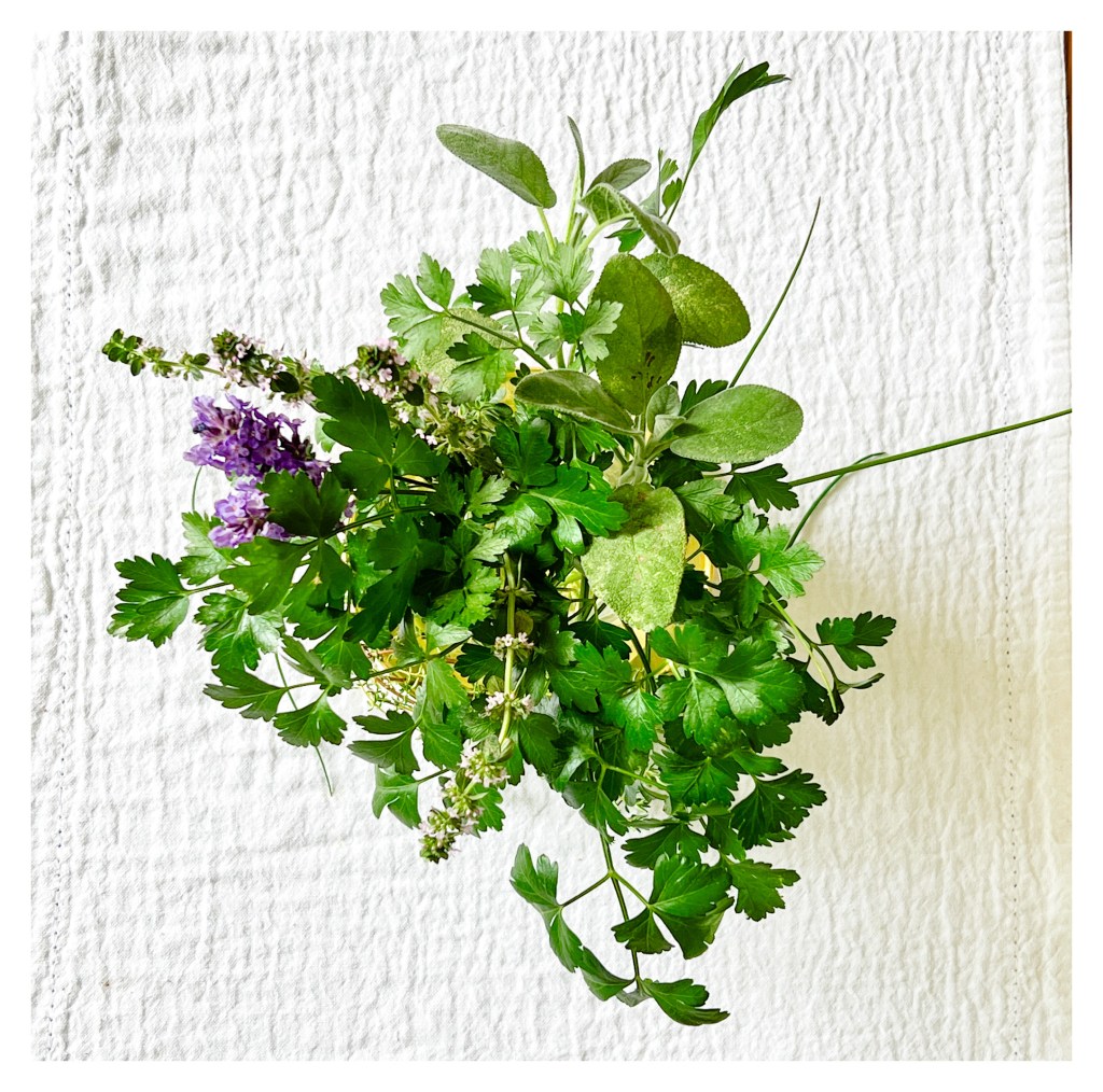 A water bowl catches the light and draws visitors: robins come to drink, wrens to bathe. Aromatic herbs like rosemary, lavender, and thyme hum with bees and butterflies—and lend their fragrance to both soup and summer air.