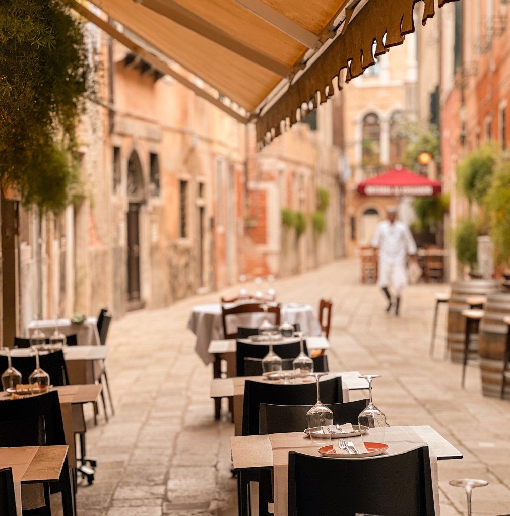 So, our choice of restaurant must strike a delicate balance — affordable yet refined, serving light, thoughtful dishes rather than tourist fare. We avoid those ambiguous pizzeria–restaurant hybrids, and steer clear of menus that read like small novels (a sure sign that nothing will be fresh). Quality comes first. Then, seating — which in Venice can be deceiving at first glance. Outdoor dining is always a must, except on those foggy, humid winter days when even the gondolas seem to disappear into the mist.